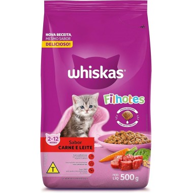 RACAO WHISKAS FILHOTES CARNE/LEITE 500GR